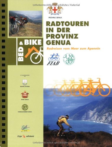 Radrouten von Genua und Umgebung mit Kartographien und Abbildungen, eine Hauptroute von Rossiglione im Valle Stura bis Moneglia an der Rivera di Levante mit 325 km, 19 Streckenvarianten mit insgesamt 555 km, Schwierigkeitsgrade, Kilometerangaben, Höhenangaben,Tourenbeschreibungen, Sehenswürdigkeiten, Bed & Bike (Hotels, Bed & Breakfast), Fahrradwerkstätten, Touristinformationen.